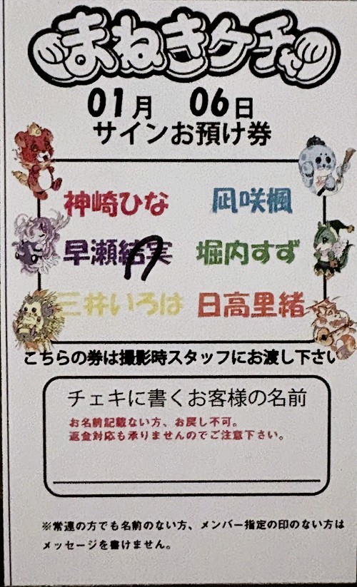 次に向かったのは、早瀬結実です。実に6年ぶりのお預けチェキを結実ちゃんに託しました。「サインお預け券」の裏面にコメントを書くのも久しぶりです。