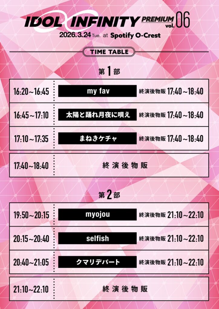 2026年3月24日(火)に行われた「IDOL ∞ INFINITY PREMIUM vol.6《一部》」に参加しましたのでレポートします。