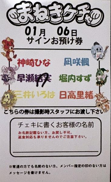 • 宿題チェキのお預け券にお名前記載ない方はお戻し不可。返金対応も承りませんのでご注意ください。