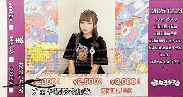 • お客様のご都合によるチェキの払い戻し・購入日当日以外での使用はお断りとさせていただきます。