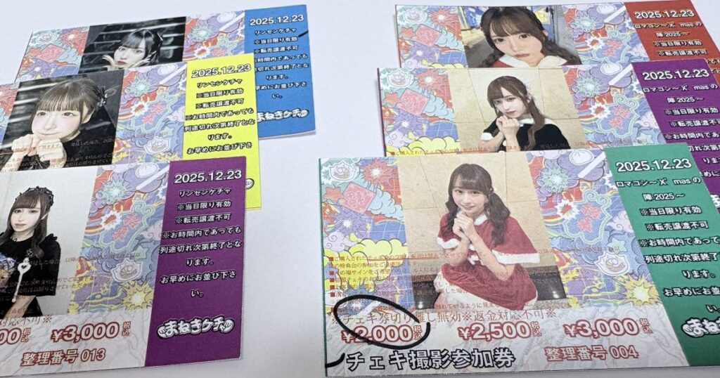 なお、2回目以降は、直前に使用したチェキ券の半券を一緒に提示し、スタッフが裏面にチェックをつけます。