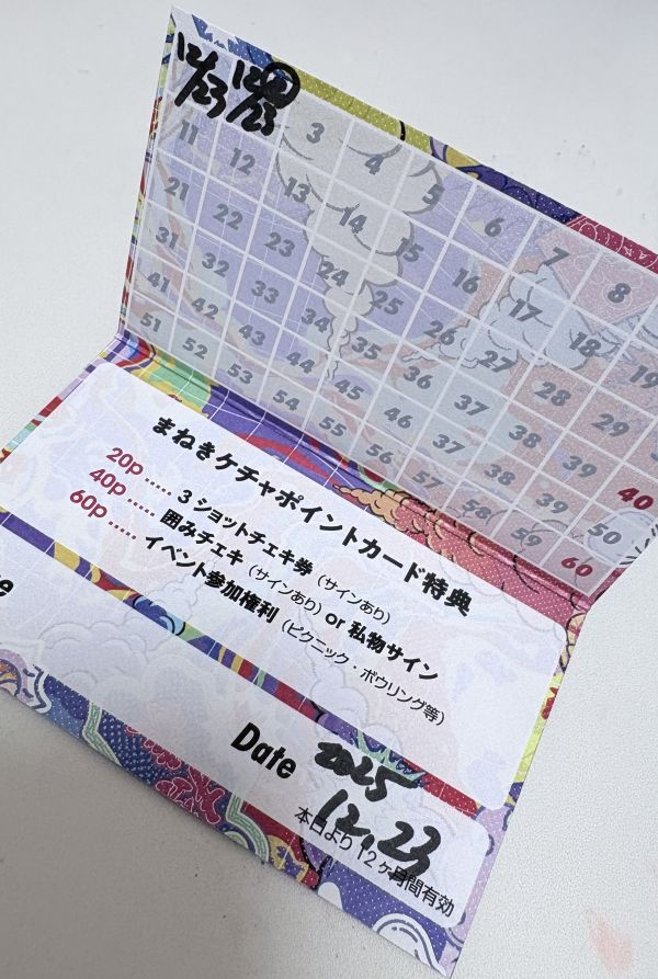 ポイントカードを持っている場合は、チェキ撮影参加券(チェキ券)の購入の際に、ポイントカードを渡し、スタンプを押してもらいます。